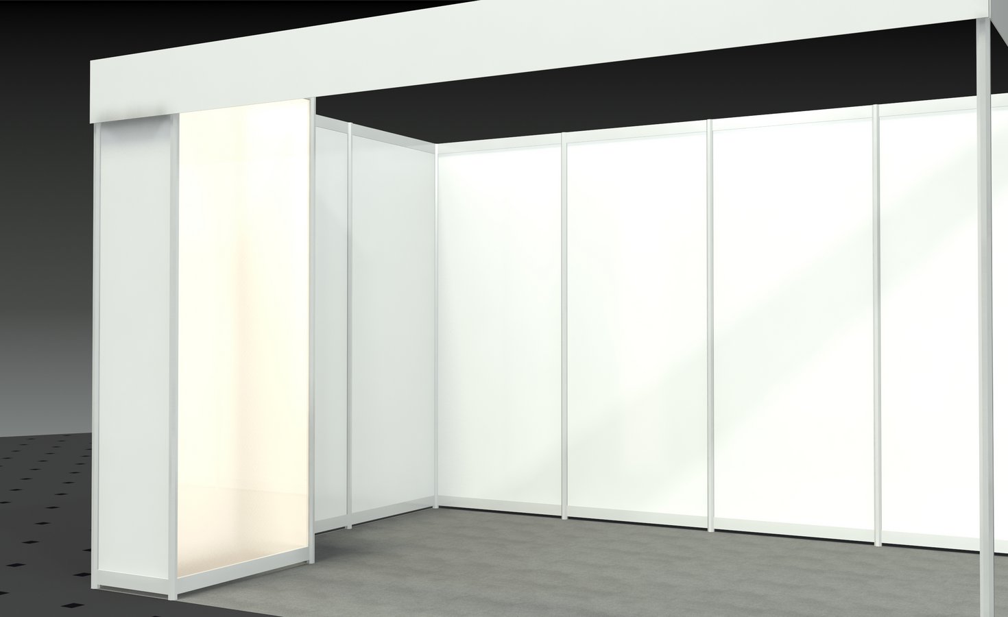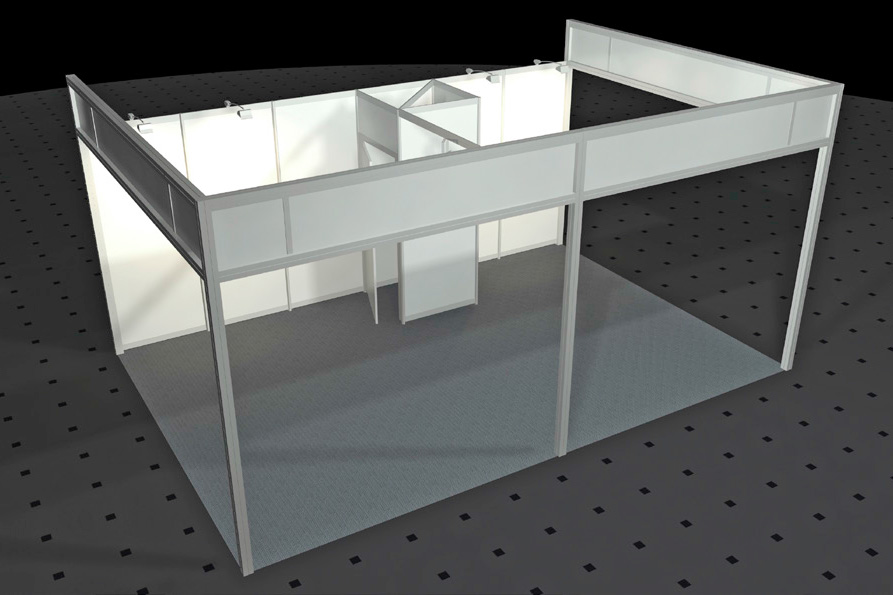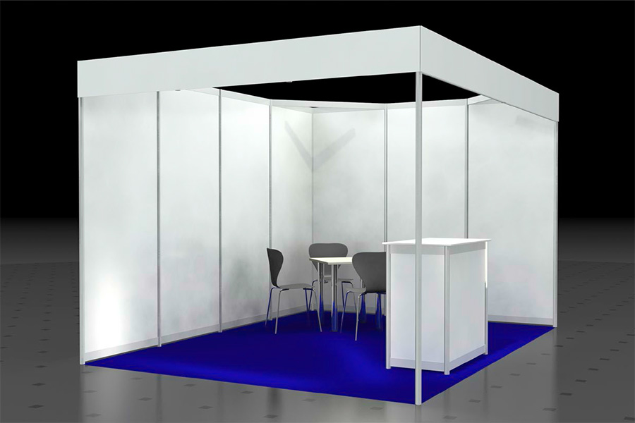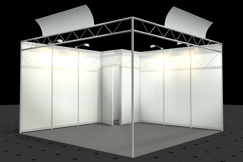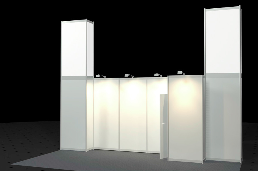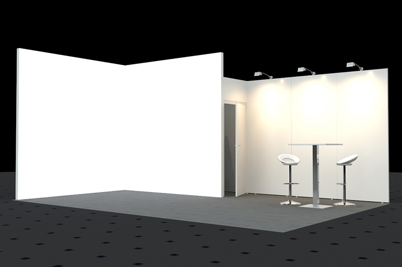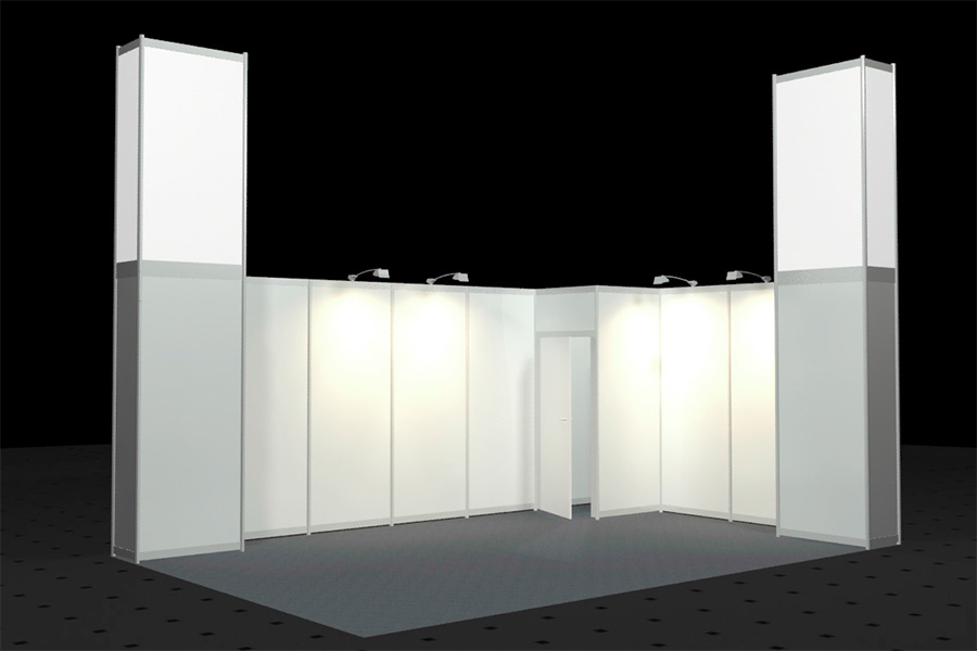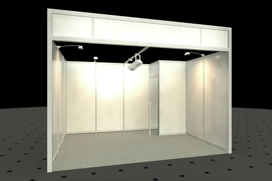 • Wände weiß, Rahmen silber (Octanorm Standbausystem)