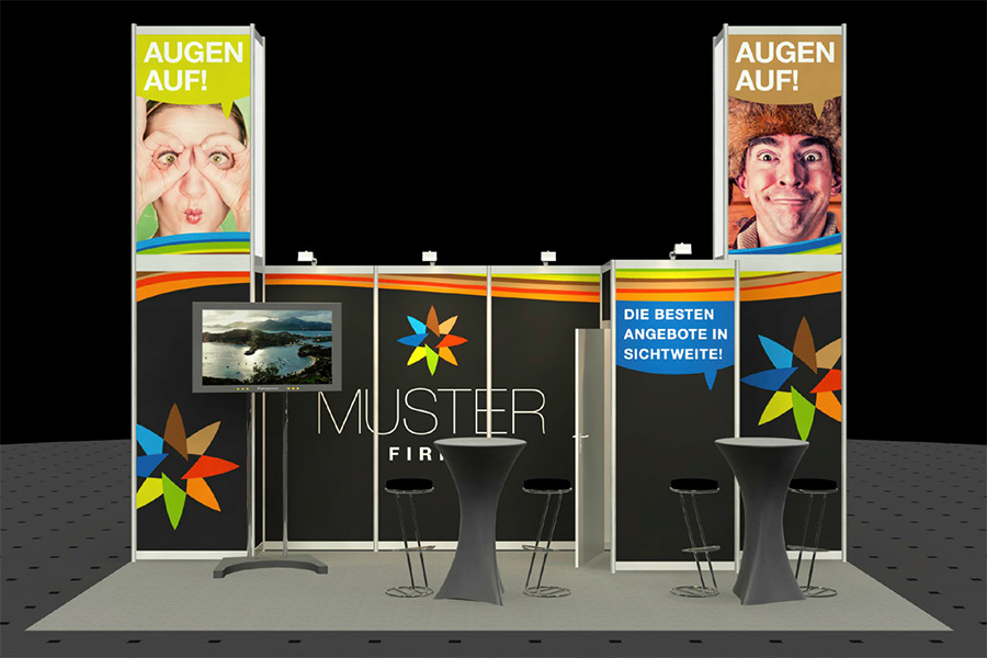 Ihre Vorteile bei unseren Mietständen sind, neben der schnellen Kalkulation und Planung, die günstigen Preise und ihre Vielseitigkeit. Unsere Basisstände lassen sich für nahezu alle Standarten und Standgrößen variieren und mit einer Vielzahl an Mobiliar und Zubehör erweitern. Sie können durch unsere Partneragentur problemlos an Ihr Unternehmen visuell angepasst werden. Von der Idee bis zum fertigen Stand setzen die Grafiker dabei Ihre Ziele kreativ in Szene.