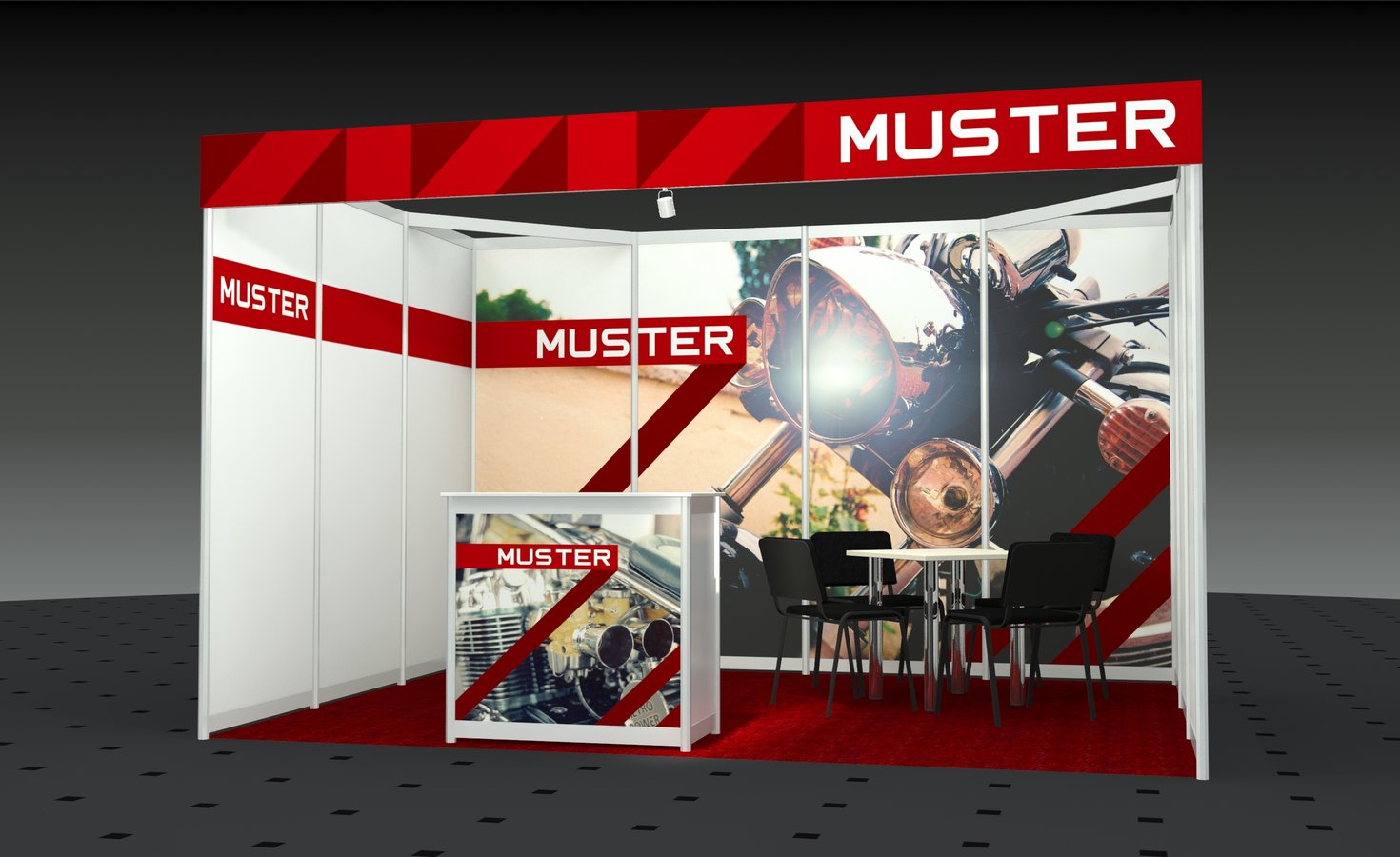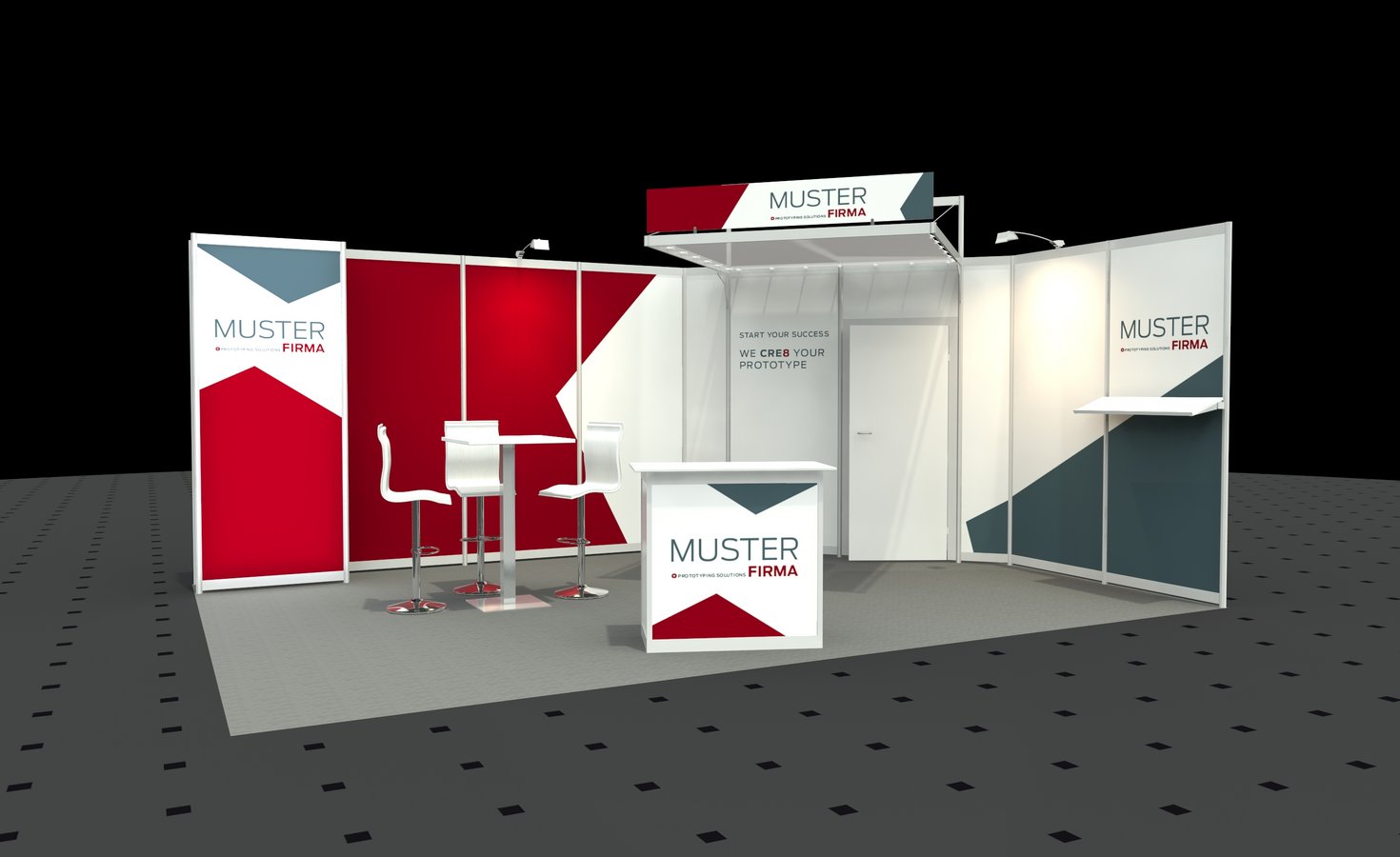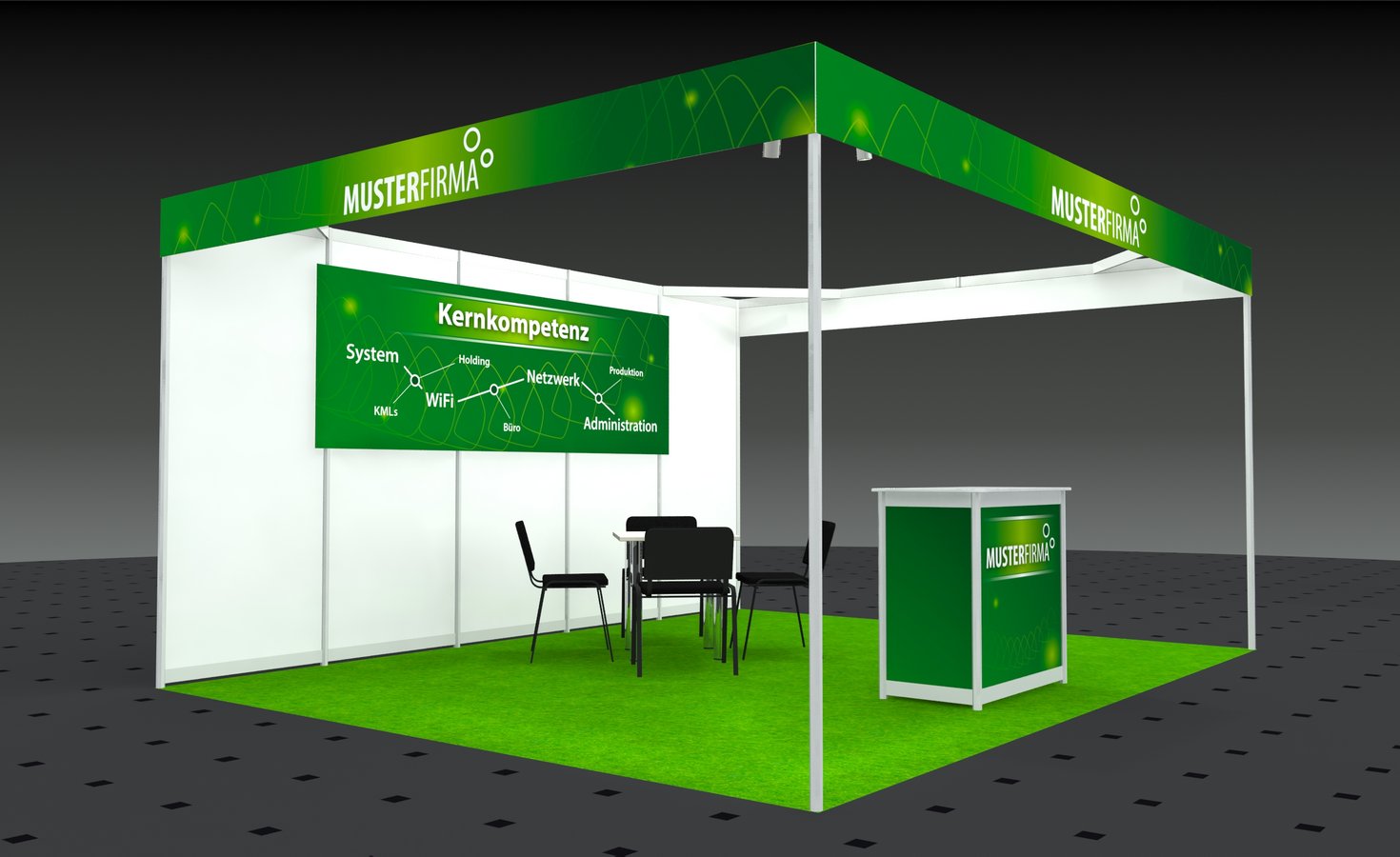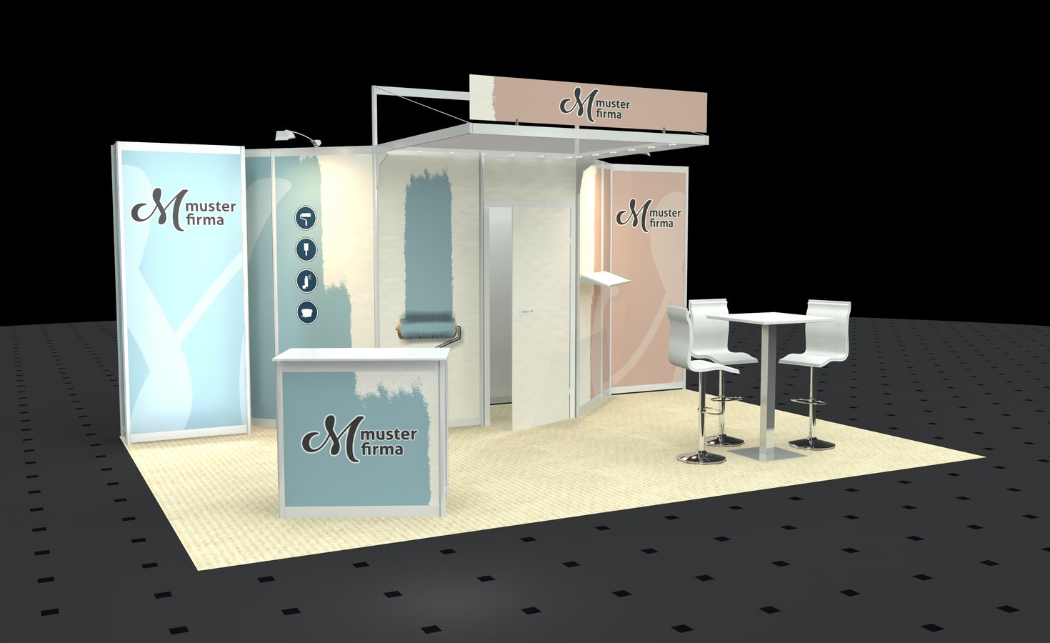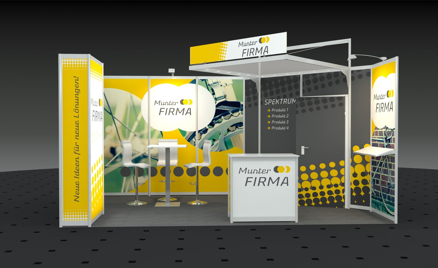 (Druckkosten für alle Wandflächen im Preis enthalten, gern unterbreiten wir Ihnen ein Angebot zur Gestaltung Ihres Messestandes)
